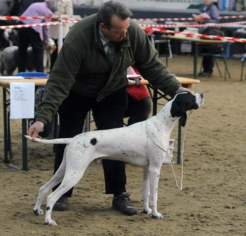 "Chrup úplný, skus nůžkový, oko hnědé, dlouhý suchý krk, vynikající hřbetní i spodní linie."